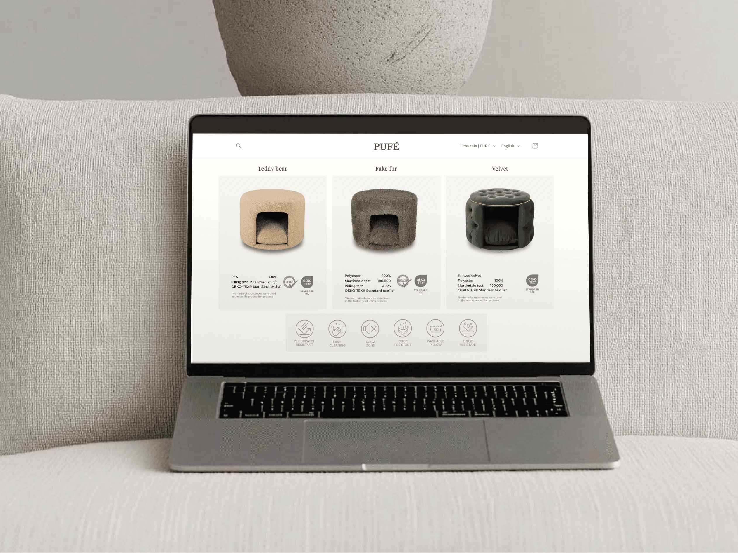 Bendradarbiaujant su "Pufé" sukūrėme vizualinę ir spausdintą medžiagą, kuri atspindi prekės ženklo išskirtinę kokybę ir apgalvotą estetiką.