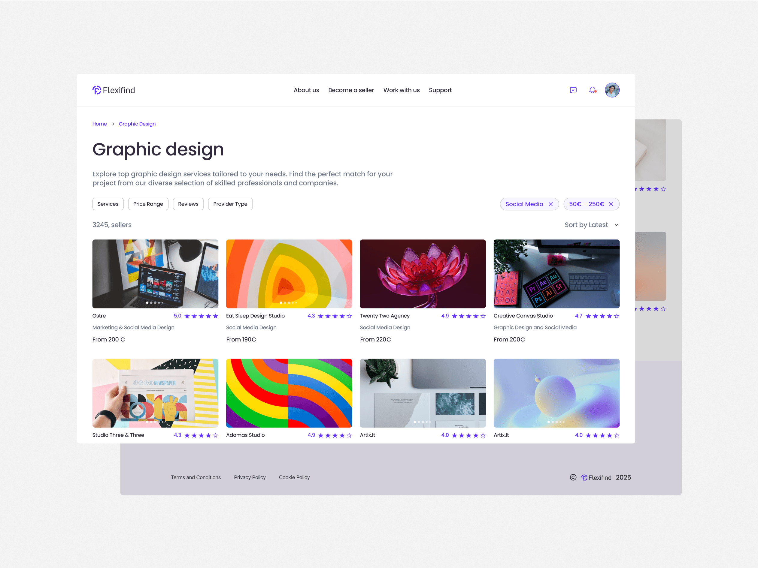 Padėjome „FlexiFind“ komandai sudėtingus industrijos iššūkius paversti aiškia ir intuityvia vartotojo patirtimi. Įgyvendinome pilną UX pertvarką ir sukūrėme modulinę dizaino sistemą, leidžiančią platformai augti – nuo pavienių laisvai samdomų specialistų iki kūrybinių kolektyvų. Atnaujinta sąsaja supaprastina projektų kūrimą, komandinį darbą ir atsiskaitymus pagal pasiektus etapus – viskas su įdiegtu skaidrumu ir finansiniu saugumu.